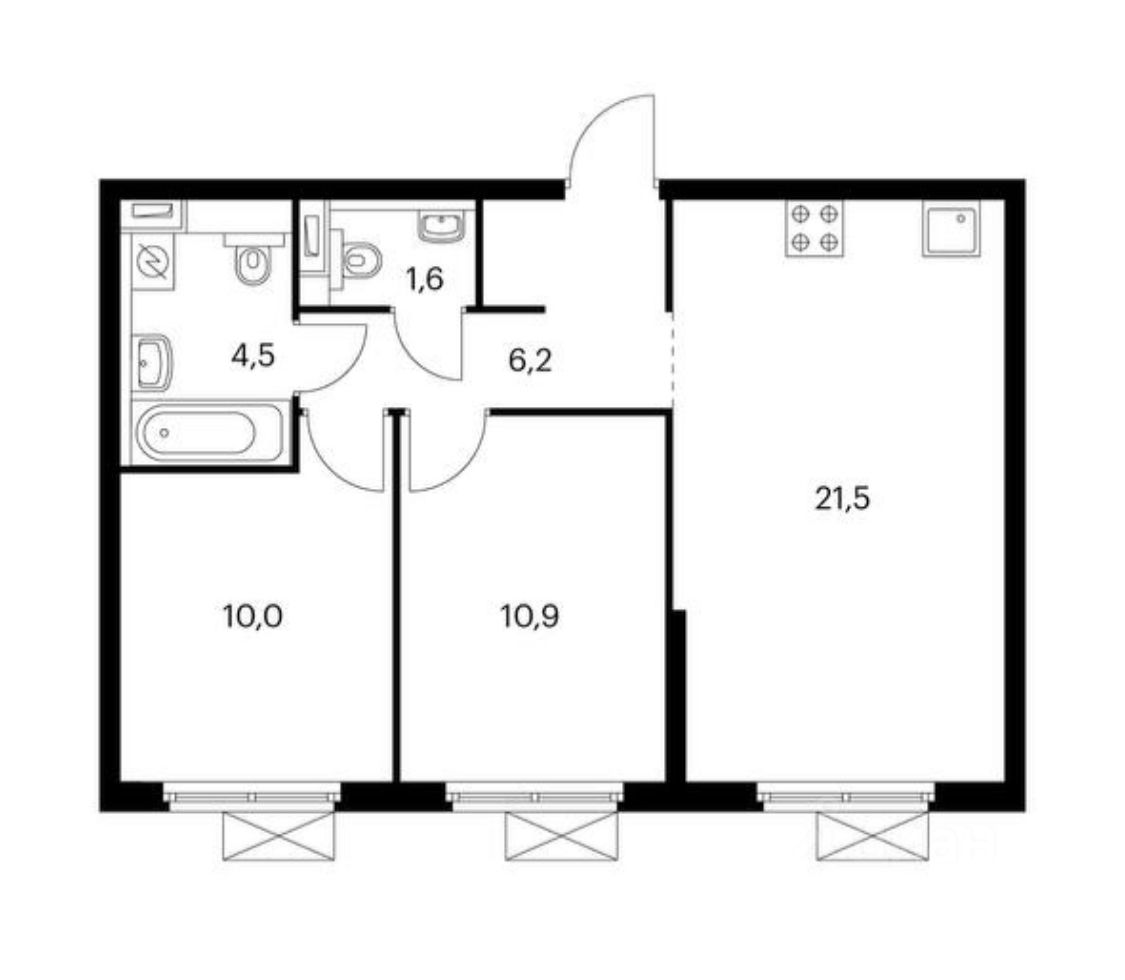 Купить 2-комн. квартиру, 54,7 м² в Москве без посредников