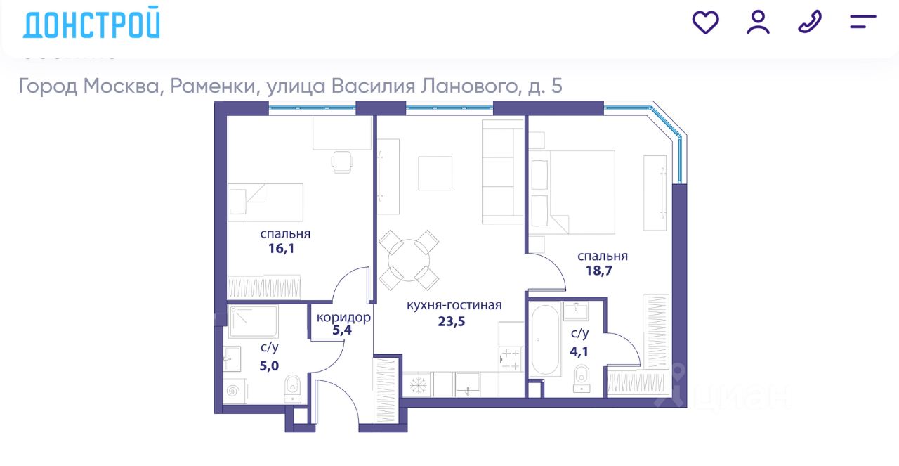 Купить 2-комн. квартиру, 72,5 м² в Москве без посредников