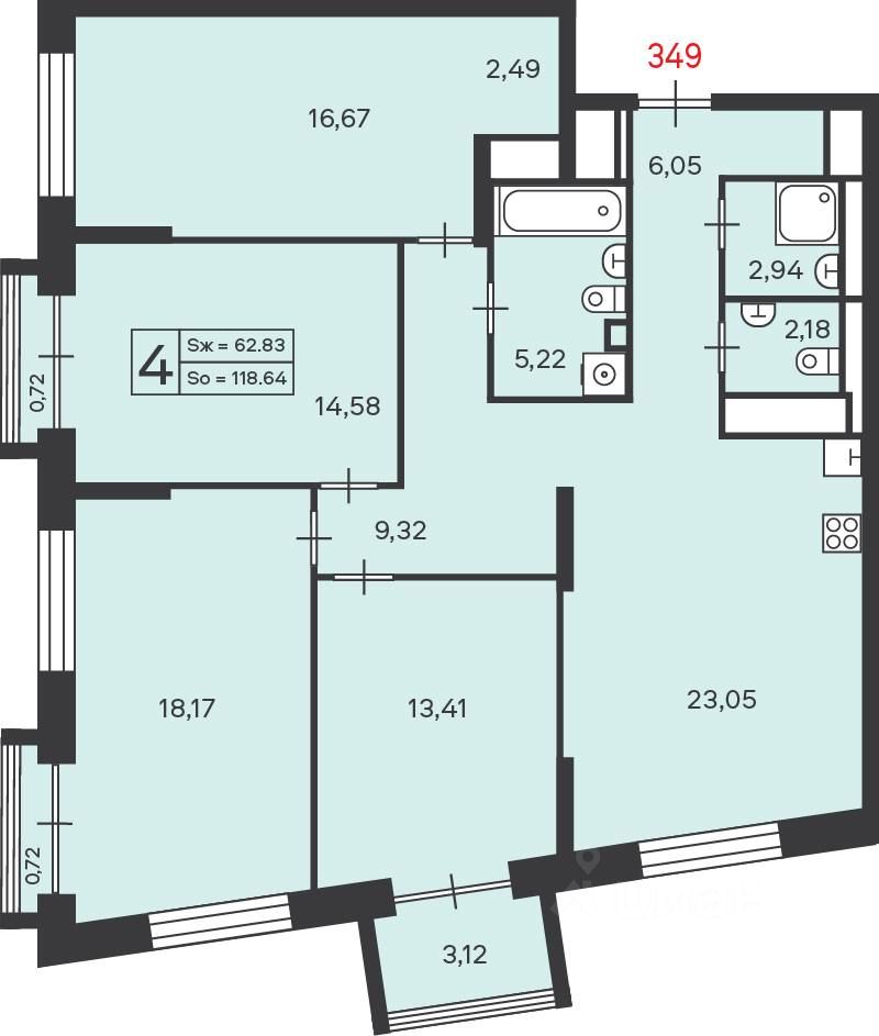 Купить 4-комн. квартиру, 118 м² в Москве без посредников