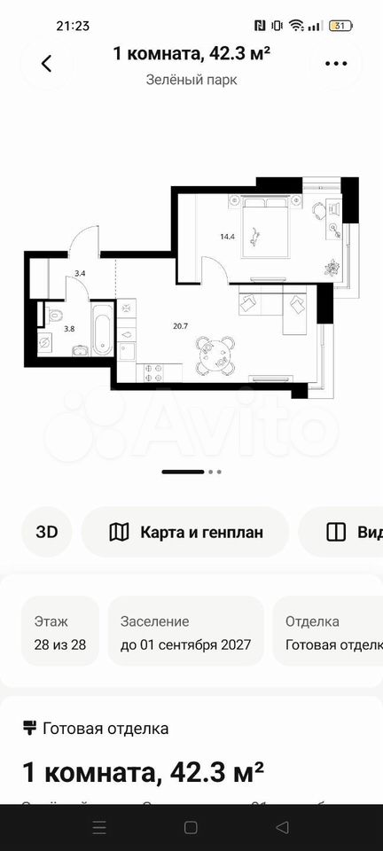 Купить 1-к. квартиру, 42,2 м², 4/28 эт. в Москве без посредников