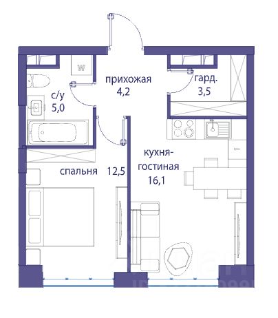 Купить 1-комн. квартиру, 41,3 м² в Москве без посредников