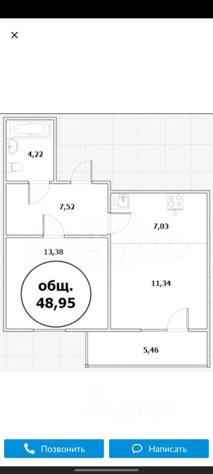 Купить 2-комн. квартиру, 43,4 м² в Новосибирске без посредников