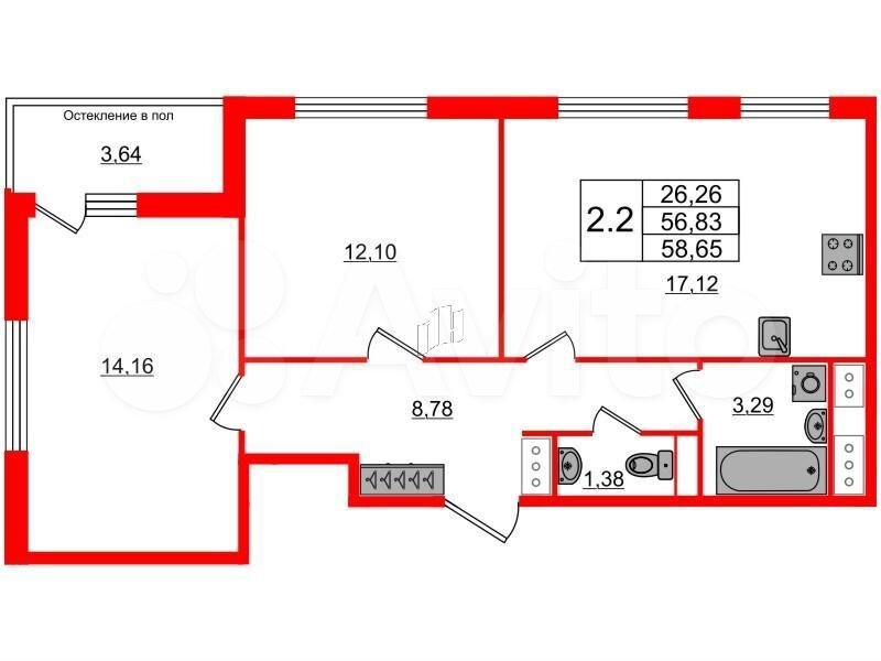 Купить 2-к. квартиру, 56,8 м², 9/10 эт. в Санкт-Петербурге без посредников